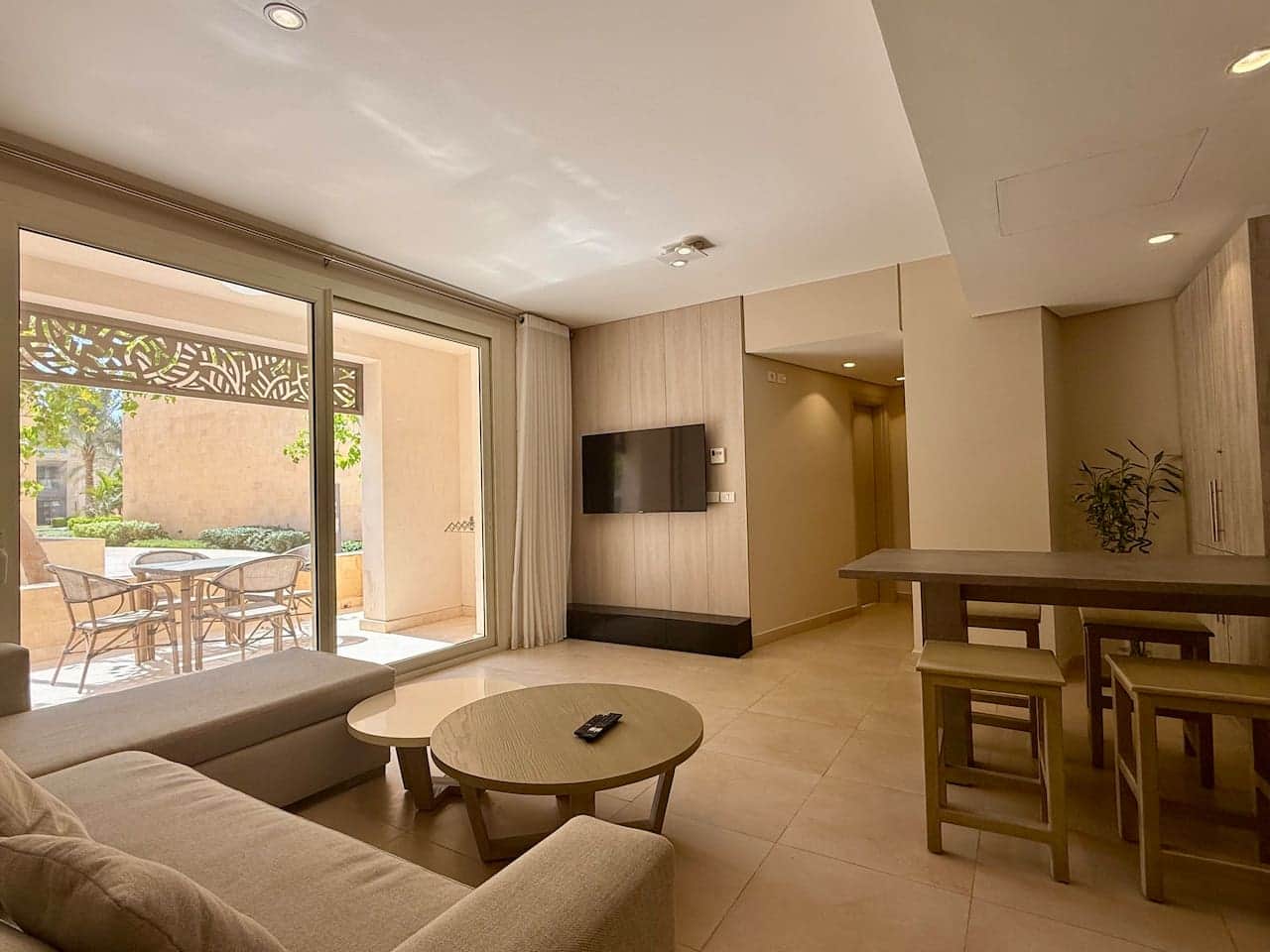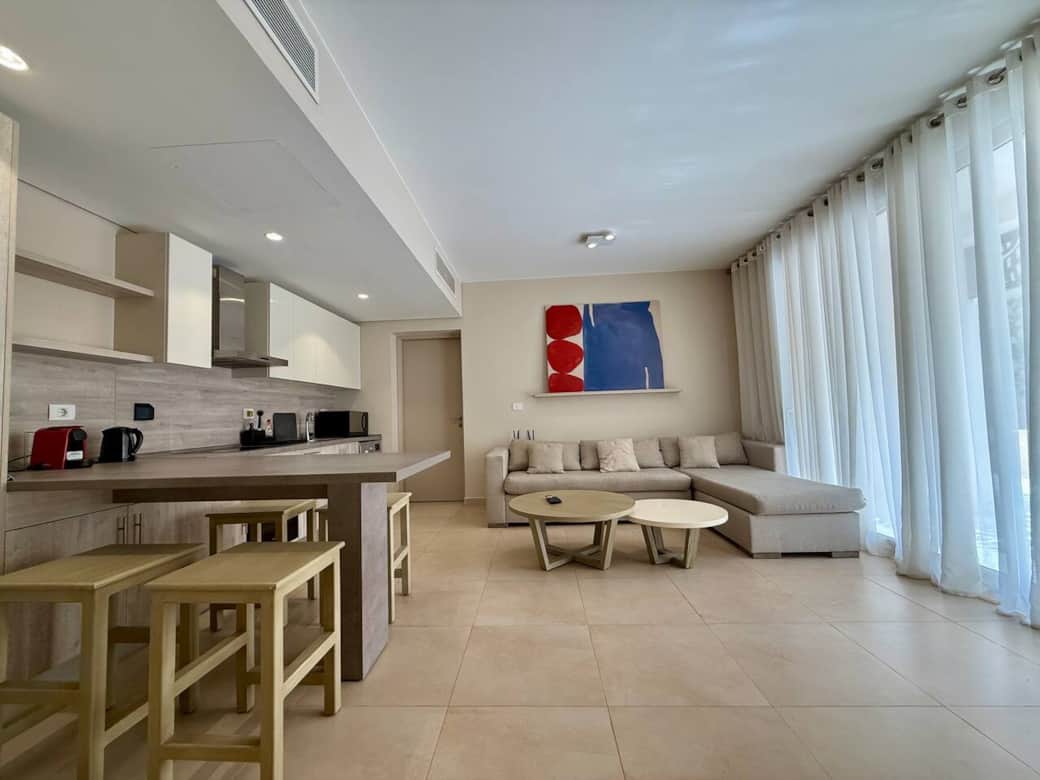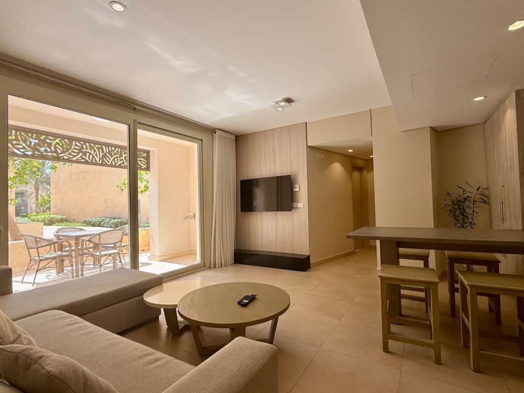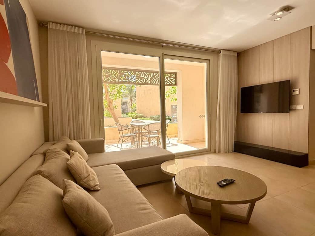This stylish 1-bedroom ground floor in Mangroovy, El Gouna’s only sea-front residence, is situated in M9 cluster, the closest cluster to the beach.