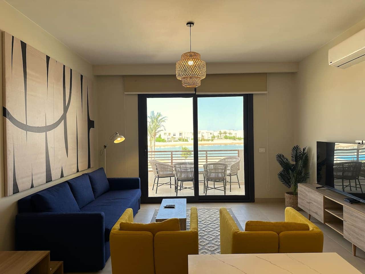 This charming 1-bedroom first-floor apartment, is located in El Gouna's beloved Shedwan compound. It boasts breathtaking views of of a serene, swimmable lagoon, and offers access to a large shared pool, just steps away from your door.