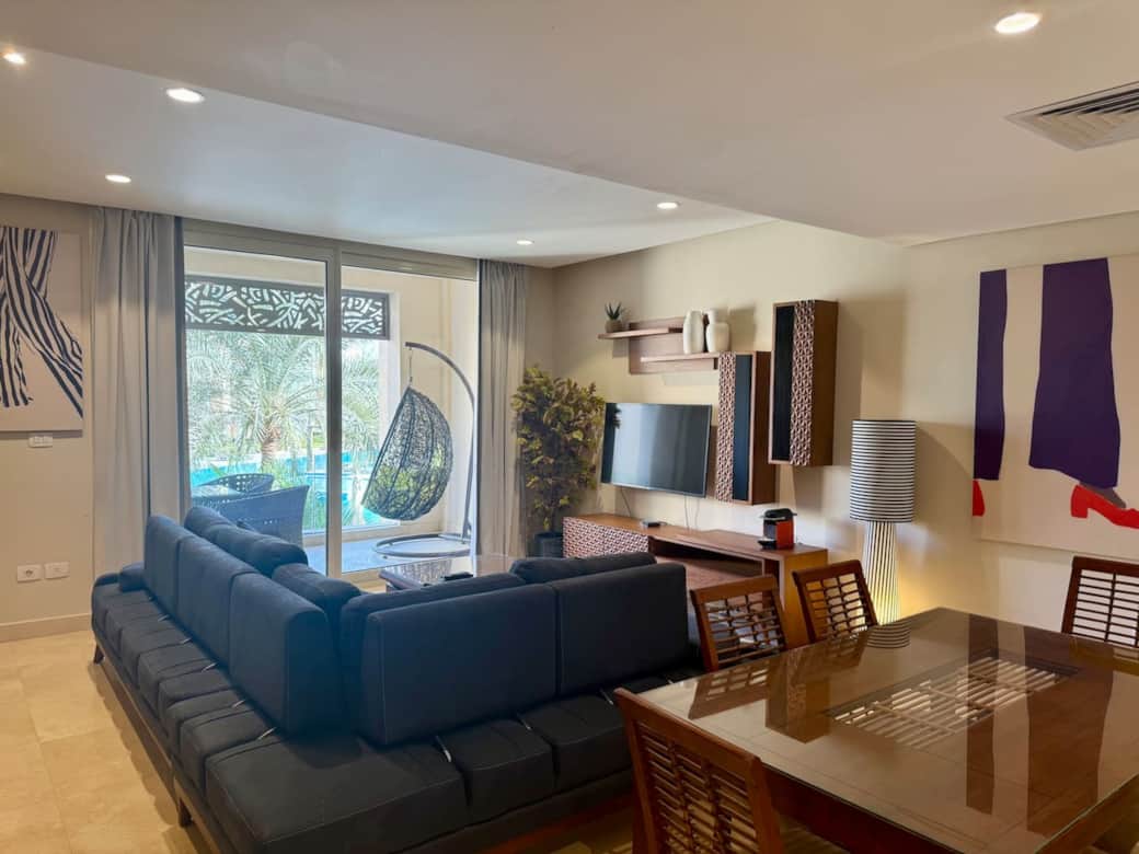 This spacious first-floor, 2-bedroom apartment with a nanny’s room, is located in Mangroovy, El Gouna’s only sea-front residence.