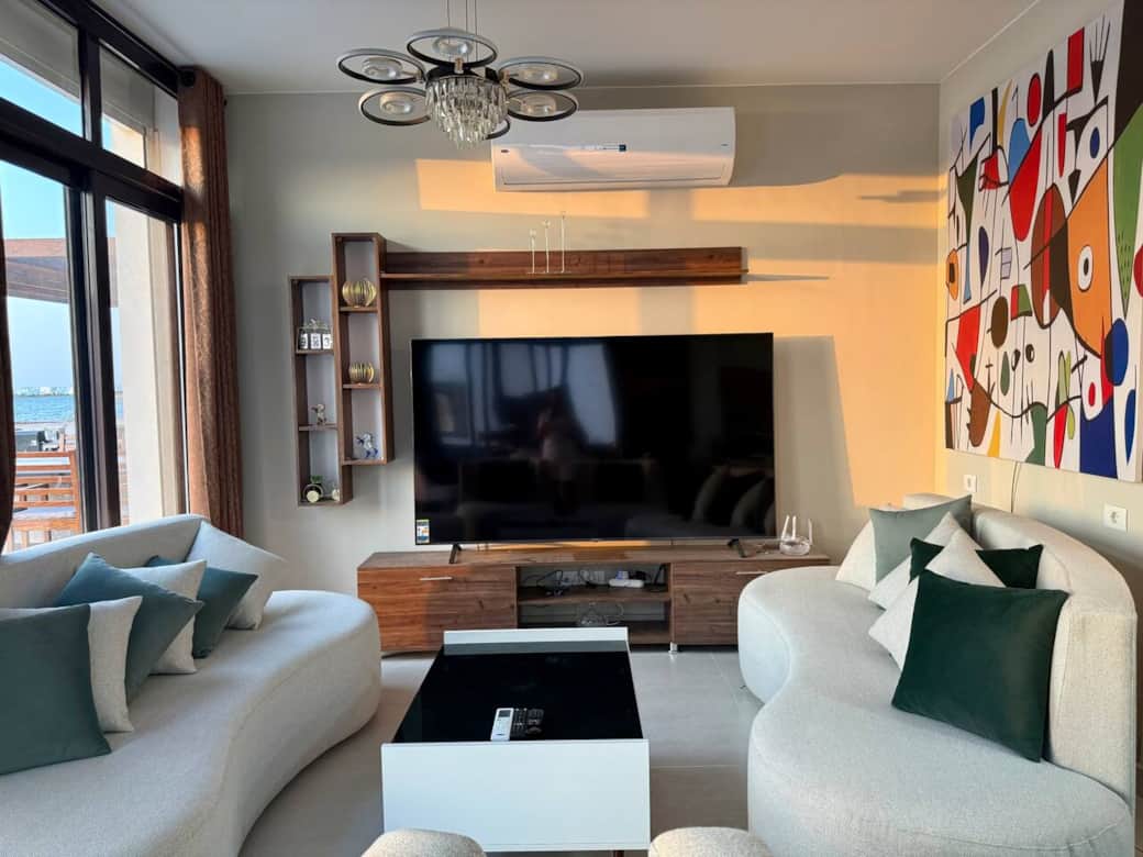 ∙ It is equipped with a 65 inch smart TV provided with Netflix and cable channels.